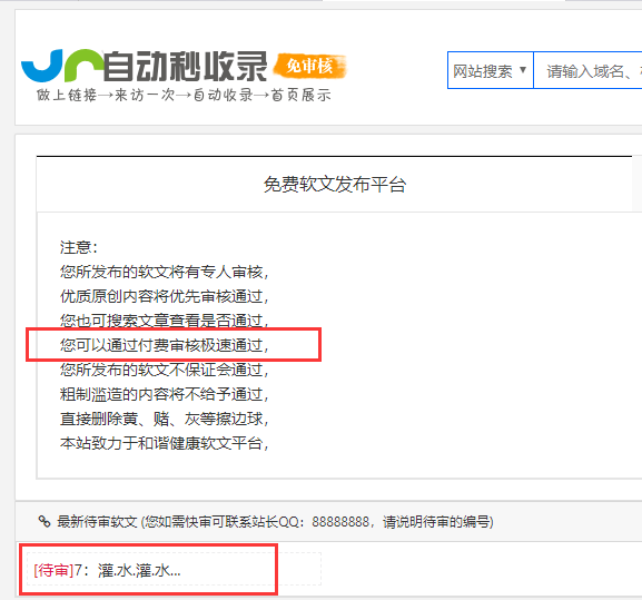 1元/站服务介绍:当软文发布后,您可以通过本服务自助付费软文审核极速通过。